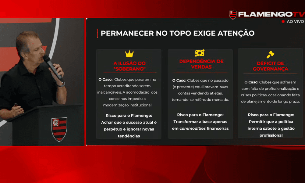 Bap enfatizou que a capacidade de investimento do Flamengo é tão sólida que, mesmo em um cenário hipotético sem a conquista de títulos, o clube manteria margem financeira suficiente para continuar com aportes significativos no futebol. Essa autonomia e poder de compra, conforme explicitado, serão cruciais para a “correção de rota” e para assegurar a permanência do Flamengo no topo. O presidente também comparou a eficiência dos investimentos do clube com a de rivais como Palmeiras e Botafogo. Para ele, o Flamengo obteve um retorno mais eficaz, apesar de esses clubes terem despendido valores mais altos em reforços. Baptista reiterou a crença na relação direta entre o volume de investimentos e a conquista de títulos, justificando, assim, a intenção de elevar ainda mais os aportes a partir de 2026. A visão estratégica é de um domínio financeiro que se traduzirá em superioridade competitiva dentro de campo, garantindo que o clube não apenas dispute, mas dite o ritmo do mercado de transferências no Brasil.